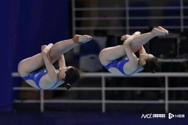 最后进行的是女子团体双人10米台比赛。广东队的全红婵/王伟莹以235.86分夺得第一名,蒋林静/谢佩铃名列第三。