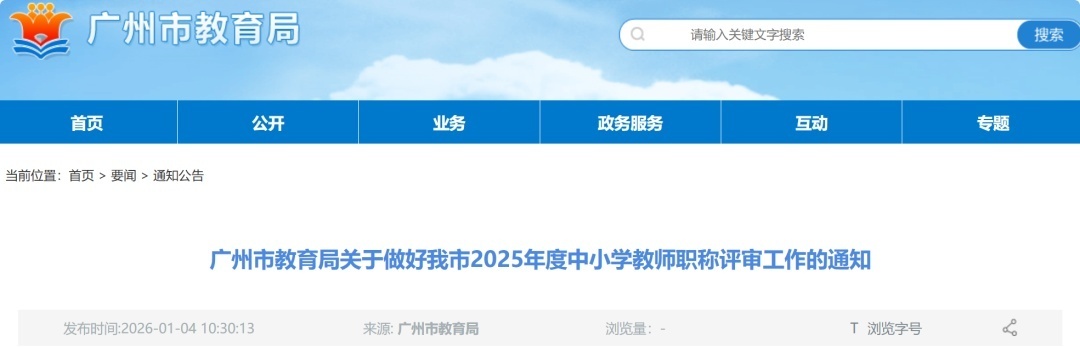 为贯彻国家和省、市深化职称制度改革意见精神,根据《广东省教育厅关于做好2025年度中小学教师职称评审工作的通知》及省、市人力资源和社会保障部门关于职称评审工作要求,现就做好我市2025年度中小学教师职称评审工作通知如下: