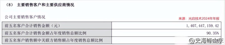 据2024年财报显示,光启技术的前五大客户为其贡献了14.07亿元的营收,占总营收的比例高达90.35%。