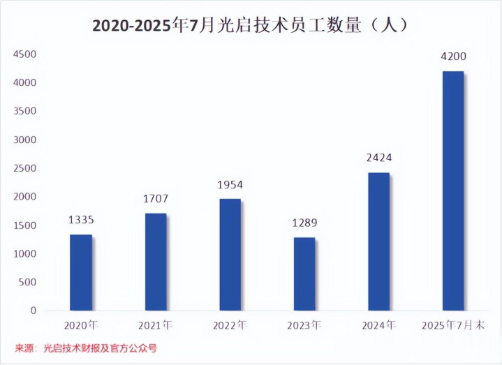 然而,很快光启技术便将这份因业务剥离而产生的员工数量差额成倍补齐。2023年至2024年,公司员工数从1289人迅速增长至2424人,而后又仅仅用7个月时间扩充到4200人。如此大规模的人员扩充,充分表明公司为应对订单的激增做好了充分准备。这些新招募的员工涵盖了研发、生产、销售、管理等各个领域,为公司的产能扩张和业务发展提供了有力的人才保障。